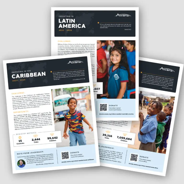 Part of the fun of designing for Awana is that, as an organization, it includes a wide variety of products and offerings. I’ve gotten the chance to work on items that get used in traditional Awana clubs around the world. But I’ve also had the opportunity to design full suites of assets, including banners, stickers, t-shirts, mailers and more to equip our field workers as they prepare to host large events. I enjoy working with our development team to create newsletters, postcards, digital ads, and more to inform donors about all that God is doing through Awana globally. I designed both the deliverable as well as all of the associated promotional materials for the Formational Home Event Kit. I created countless digital and print assets for the annual Child Discipleship Forum.